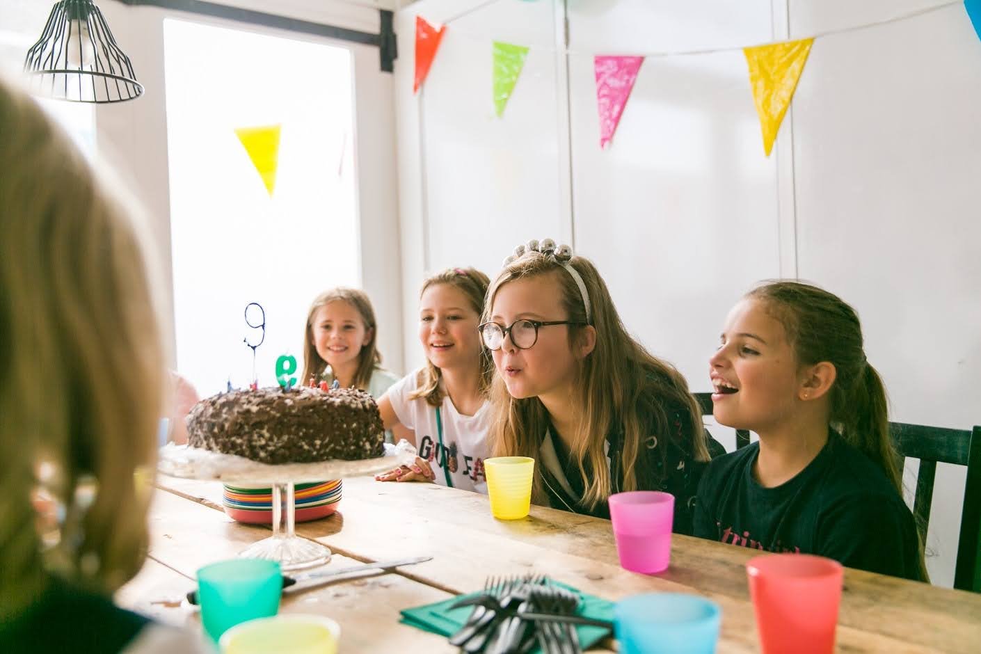De studio versieren we met slingers, koffie en limonade staan klaar.